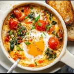 Baked Feta Eggs with Tomatoes and Spinach are one of those simple, satisfying dishes I turn to when I want a cozy, hands-off breakfast or a light dinner. This oven-baked eggs recipe blends tangy feta, sweet cherry tomatoes, and wilted spinach for a dish that’s fast to prep, impressive to serve, and perfect any time you crave a warm, savory meal.