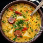 A hearty and flavorful soup combining andouille sausage, creamy cheese, and Cajun spices, perfect for chilly evenings.