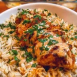 A comforting bowl of creamy Cajun chicken and rice, perfect for family dinners or impressing friends.