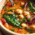 A hearty and healthy Tuscan-inspired soup featuring chickpeas, fresh spinach, and coconut milk for a comforting meal.